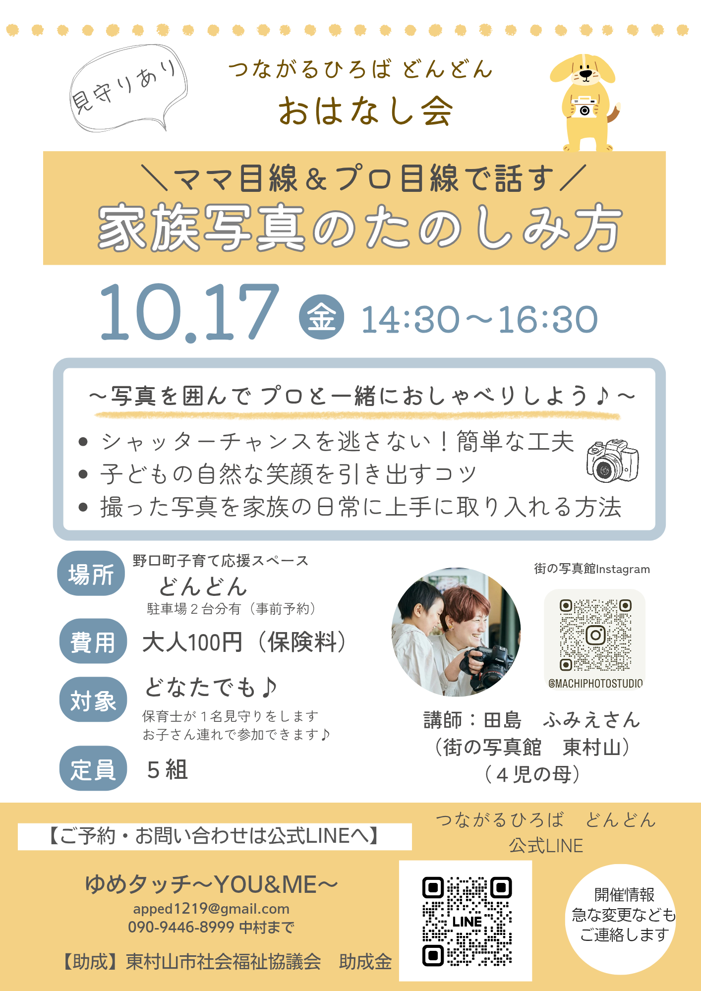 お話し会テーマ:ママ目線&プロ目線で話す〜家族写真のたのしみ方〜
